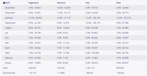 Statistiken 2022 bis 2025